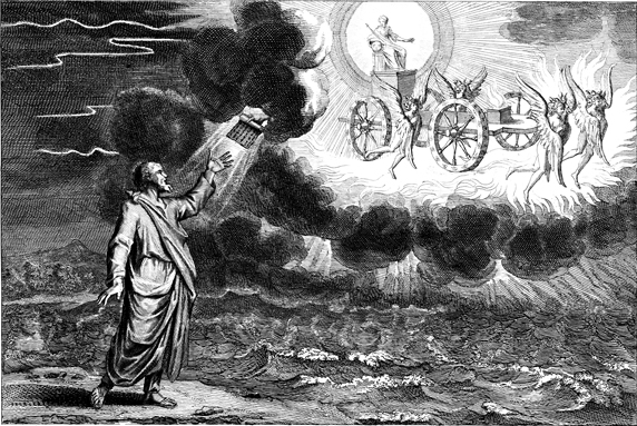 Description: Ezekiel’s vision of the heavenly throne room includes God reigning above, the wheel within the wheel, and the four creatures (man, lion, ox, and eagle).
