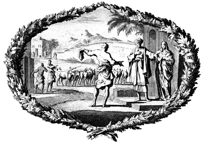 Description: This engraving shows a master hosting a great banquet, and after those who were originally invited decline the invitation, the master sends his slave out to invite people off of the street.