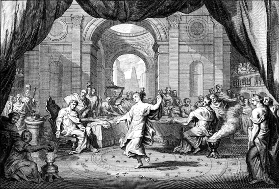 Description: This engraving by Otto Elliger depicts the daughter of Herodias, the wife of Herod’s brother Philip, dancing for Herod on his birthday.