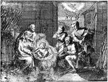 Description: Shepherds visit the newborn Jesus after learning of his birth from an angel.