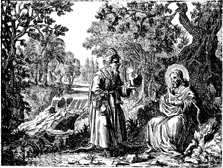 Description: Satan tempts Jesus in the wilderness.