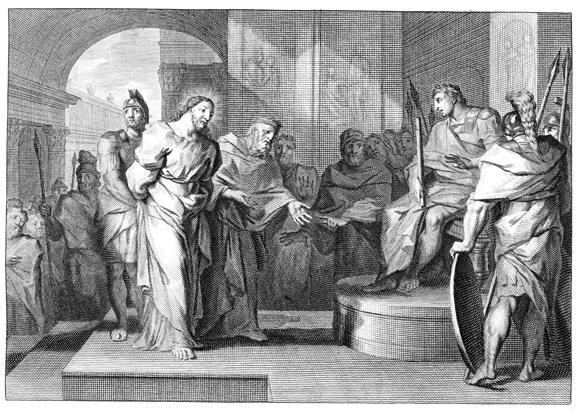 Description: This engraving by Otto Elliger depicts Jesus Christ before Pontius Pilate, the governor or prefect of Judea (r. r. 26-36 CE).