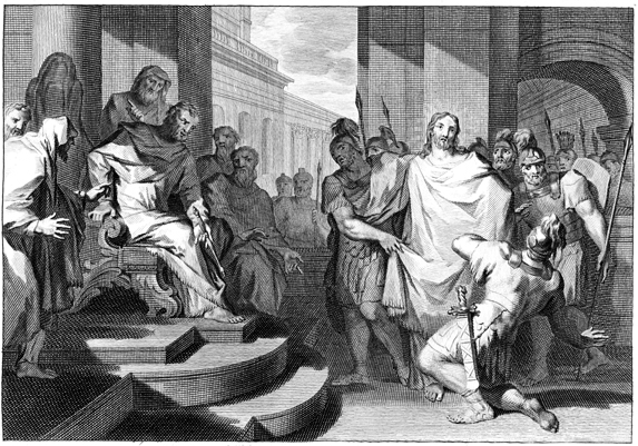 Description: This engraving by Otto Elliger depicts Jesus Christ before Herod Antipas, the Tetrarch of Galilee (r. 4 BCE- 39 CE).