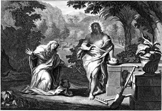 Description: This engraving by Otto Elliger depicts Mary Magdalene speaking to Jesus, who she at first mistake for the gardener, after the resurrection.