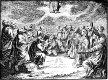 Description: Jesus ascends into heaven as his disciples look on.
