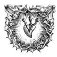 Description: This tailpiece features a crown of thorns with three nails and a heart, symbolizing the wounds of Christ.