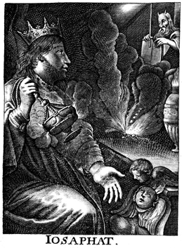 Description: King Jehoshaphat of Judah with a censor for incense and Moses holding the Ten Commandments.