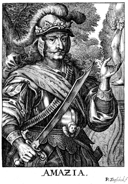 Description: Amaziah, the King of Judah, dressed in armor holding a sword.