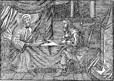 Description: Jesus converses with Nicodemus at night.