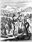 Description: Jesus feeds the 5000 with two fish and five loaves of bread. Engraved by John Sturt (1658–1730).