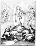 Description: Jesus is transfigured in the presence of Peter, James, John, Moses, and Elijah. Engraved by John Sturt (1658–1730).