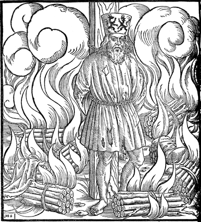 Description: Hieronymus Pragensis is burned at the stake.
