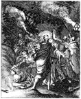 Description: Jesus is arrested at the kiss of Judas Iscariot; Peter strikes the ear of Malchus with his sword. Engraved by John Sturt (1658–1730).