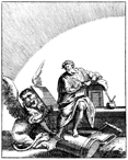 Description: St. Mark writes his gospel with his attribute, the lion, nearby. Engraved by John Sturt (1658–1730).
