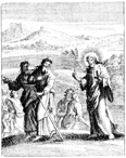 Description: Jesus commissions the twelve apostles and sends them out with instructions. Engraved by John Sturt (1658–1730).