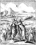 Description: Jesus cures a deaf man with a speech impediment by first putting his fingers in the man's ears, then spitting and touching the man's tongue while looking up into heaven and saying, "Be opened.” Engraved by John Sturt (1658–1730).