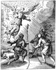 Description: An angel tells shepherds of the birth of Jesus. Engraved by John Sturt (1658–1730).