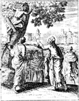 Description: Jesus speaks to Zacchaeus, who has climbed a sycamore tree in order to see him. Engraved by John Sturt (1658–1730).