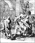 Description: Joseph of Arimathea has Jesus' body taken down from the cross. Engraved by John Sturt (1658–1730).