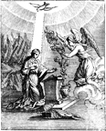 Description: The angel Gabriel visits Mary and announces that she will give birth to Jesus. Engraved by John Sturt (1658–1730).