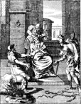 Description: Jesus is mocked as a crown of thorns is placed on his head. Engraved by John Sturt (1658–1730).