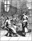 Description: Peter confronts Sapphira. Engraved by John Sturt (1658–1730).
