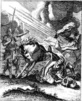 Description: Jesus confronts Saul on the road to Damascus. Engraved by John Sturt (1658–1730).