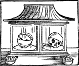 Description: This simple image of a coffin with skulls illustrates the title page of this small collection of fifteen funeral sermons.