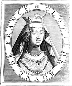 Description: A portrait of Queen Clotilde (475–545), wife of Clovis I, King of the Franks and a Roman Catholic saint.