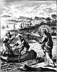 Description: Jesus calls his first disciples, Peter and Andrew, at the Sea of Galilee. Engraved by John Sturt (1658–1730).