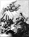 Description: A rendering of the final beatitude: blessed are the persecuted for great is their reward in heaven. Engraved by John Sturt (1658–1730).