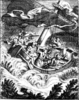 Description: Jesus sleeps in a boat during a storm. Engraved by John Sturt (1658–1730).
