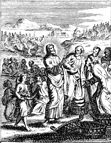 Description: Jesus feeds the 5000 with two fish and five loaves of bread. Engraved by John Sturt (1658–1730).