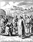 Description: James and John's mother asks Jesus to allow one to sit at his right hand and the other at his left in his glory. Engraved by John Sturt (1658–1730).