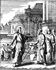 Description: Jesus is questioned about paying taxes to Caesar by the Pharisees and Herodians. Engraved by John Sturt (1658–1730).