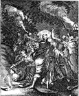 Description: Jesus is arrested at the kiss of Judas Iscariot; Peter strikes the ear of Malchus with his sword. Engraved by John Sturt (1658–1730).