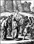 Description: Jesus raises a widow’s son from the dead at Nain. Engraved by John Sturt (1658–1730).