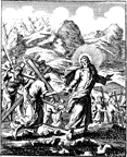 Description: Jesus calls the disciples to symbolically take up their crosses and follow him. Engraved by John Sturt (1658–1730).