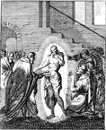 Description: Jesus appears to his disciples following his resurrection. He eats a piece of broiled fish to prove he is not a ghost. Engraved by John Sturt (1658–1730).