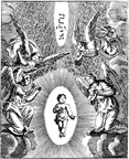 Description: A rendering of the incarnation of the Word. Engraved by John Sturt (1658–1730).