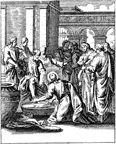 Description: Peter objects as Jesus tries to wash his feet. Engraved by John Sturt (1658–1730).