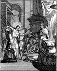 Description: Jesus is brought before Annas, the father-in-law of Caiaphas, the high priest. Engraved by John Sturt (1658–1730).
