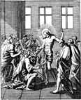 Description: Jesus appears to the disciples, instructing Thomas to place his hand in his side that he might believe. Engraved by John Sturt (1658–1730).