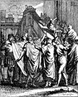 Description: Peter delivers a sermon on Pentecost. Engraved by John Sturt (1658–1730).