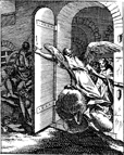 Description: An angel helps Peter and the other apostles escape from prison during the night. Engraved by John Sturt (1658–1730).