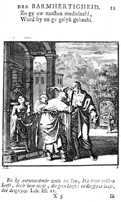 Description: A believer with two tunics gives one of them to a man with none, following the commands of John the Baptist.