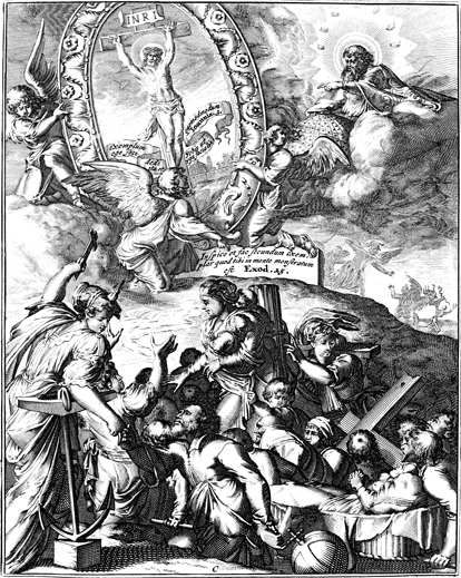 Description: Scenes from the Apocalypse involving Satan, the False Prophet, and Death being driven off, and God surrounded by seven bowls..
