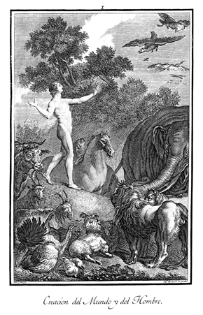 Description: God creates the world and man. The engraver’s name is located at the lower right corner.