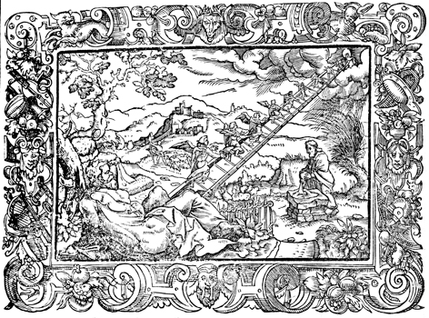 Description: While Jacob sleeps, he dreams of angels descending and ascending a ladder that connects heaven and earth. To the right, Jacob builds and altar, pours oil over it, and calls that place Bethel, while the background depicts him shepherding Laban’s flocks of sheep.