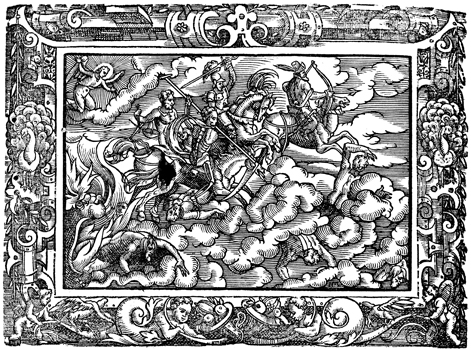 Description: After the first four seals are opened, four horsemen roam the earth bringing great calamity. They are shown carrying a bow, a sword, scales, and a scythe.